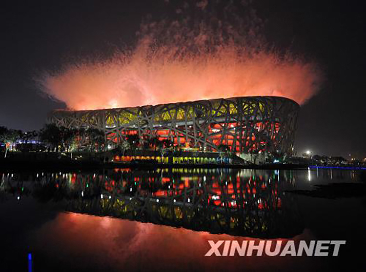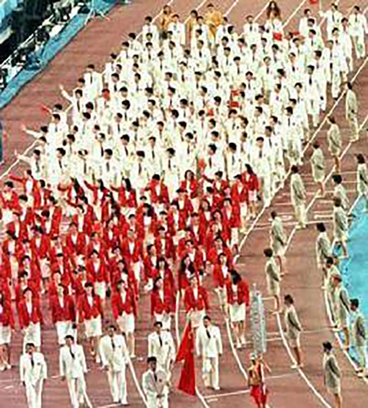 1988年汉城奥运会开幕式上,圣火与五环旗相映生辉